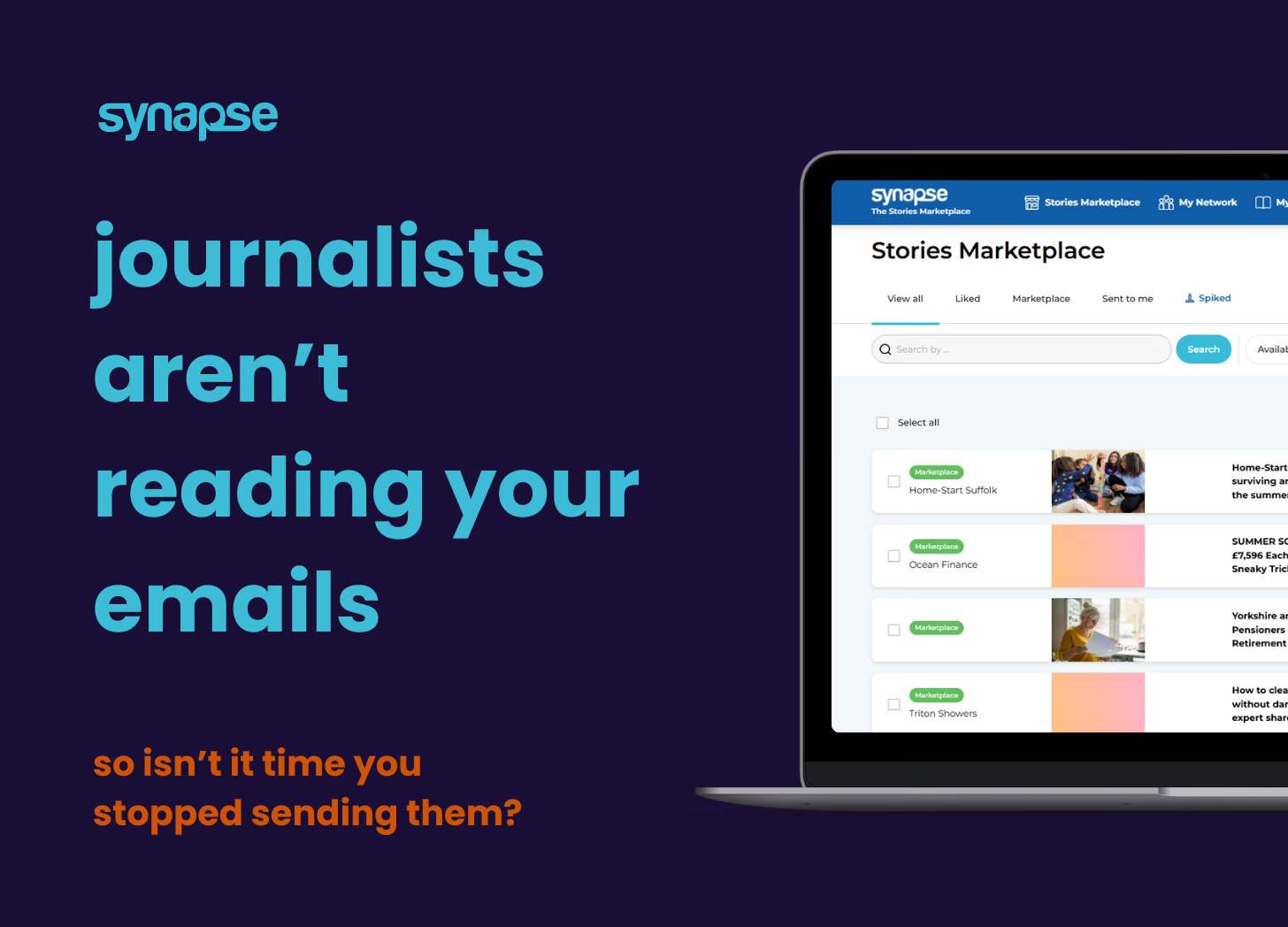 Synapse is a dedicated marketplace, helping your stories find the right audience without creating more spam.